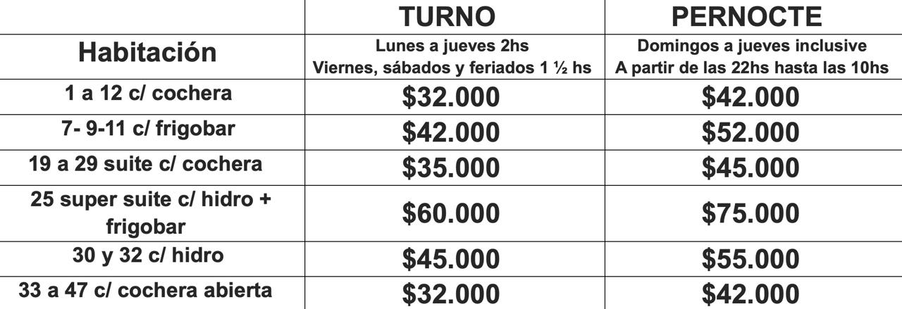 Viernes, sabados y feriados NO hay pernocte
